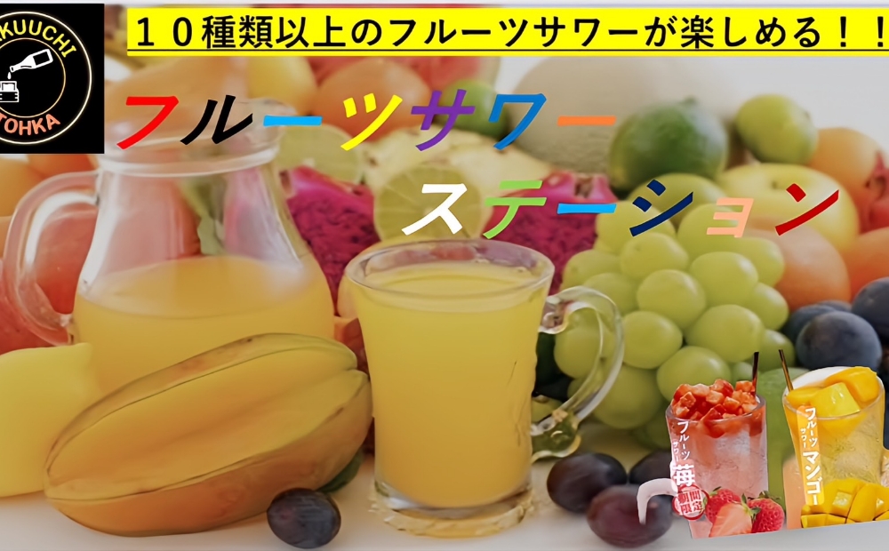 フルーツサワーを中心とした、サワーステーション!サワースタンドで自分の好きなフルーツシロップを入れて、オリジナルサワーが作れる、新感覚のスタンドBAR!