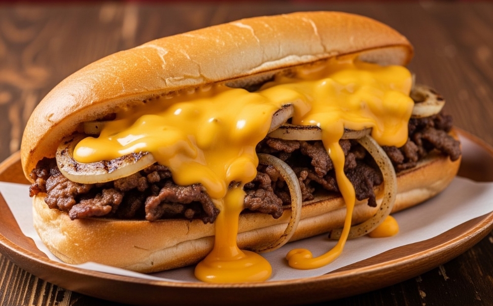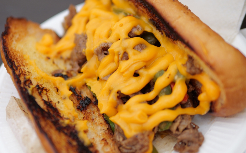 フィラデルフィア生まれのチーズステーキサンドウィッチ。 上州赤城牛に、濃厚なチェダーチーズかけた贅沢な一品です。