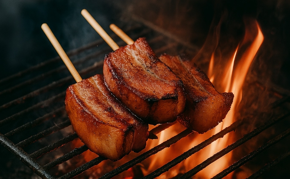 ブロックベーコンを豪快に炭火焼きで焼き上げました